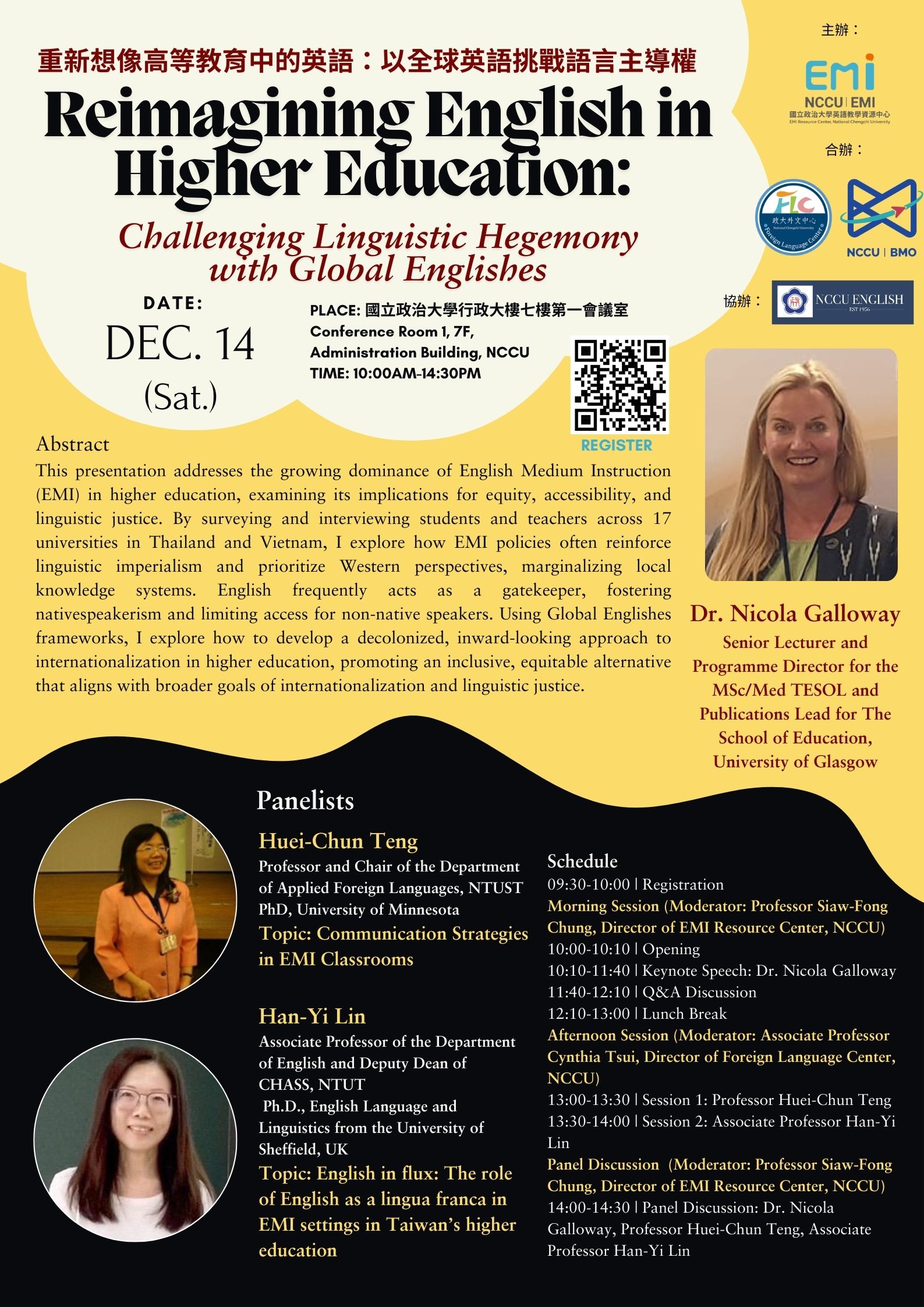 如有相關問題,請洽詢國立政治大學英語教學資源中心陳小姐電話:02-29393091 分機 60326, 電子郵件 nccu.emi@gmail.com